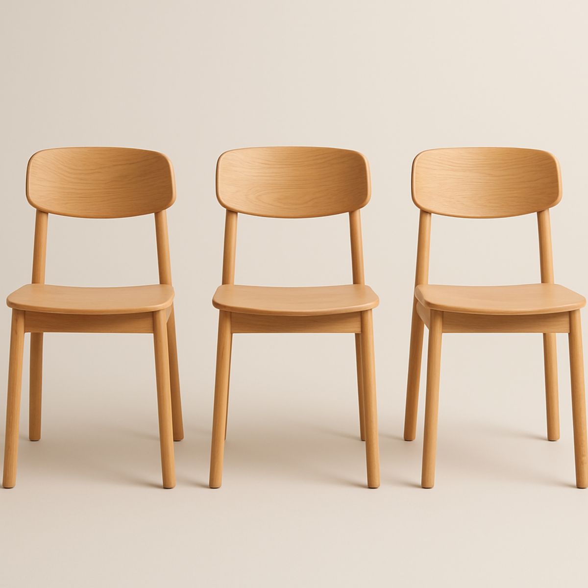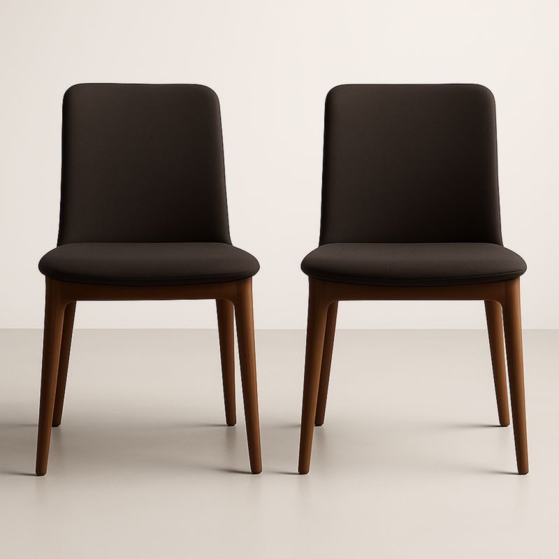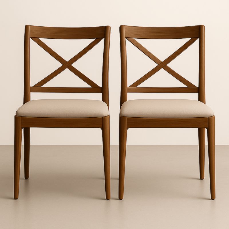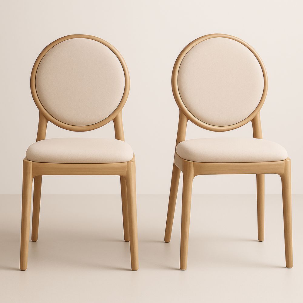 Lot de 2 Chaises Rondes en Bois et Tissu Beige