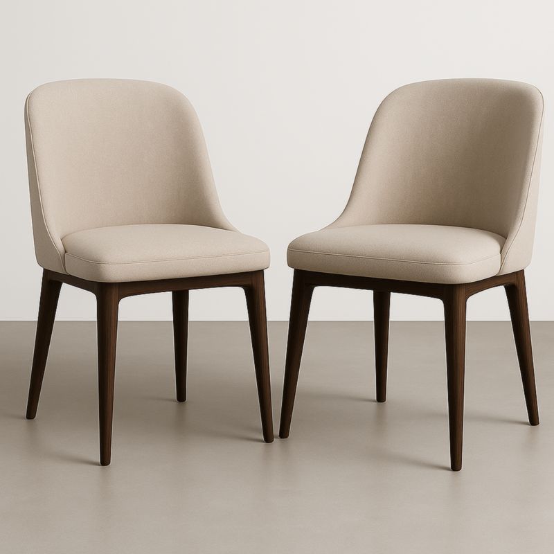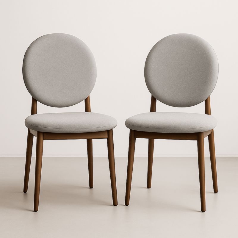 Lot de 2 Chaises Rondes en Bois et Tissu Beige