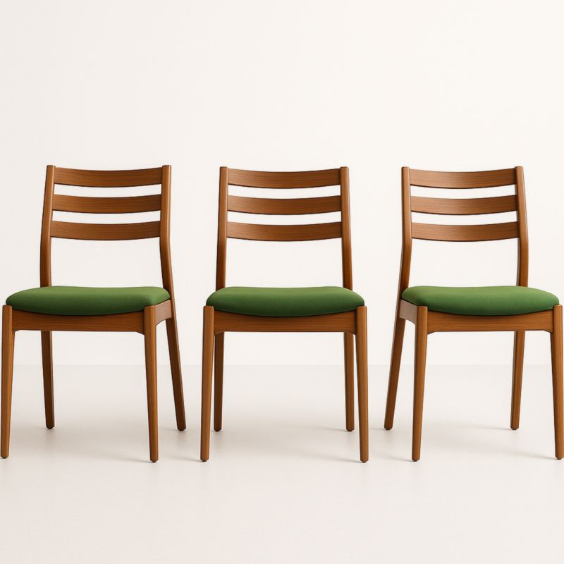Chaises en bois avec assise en polyester vert, lot de 3