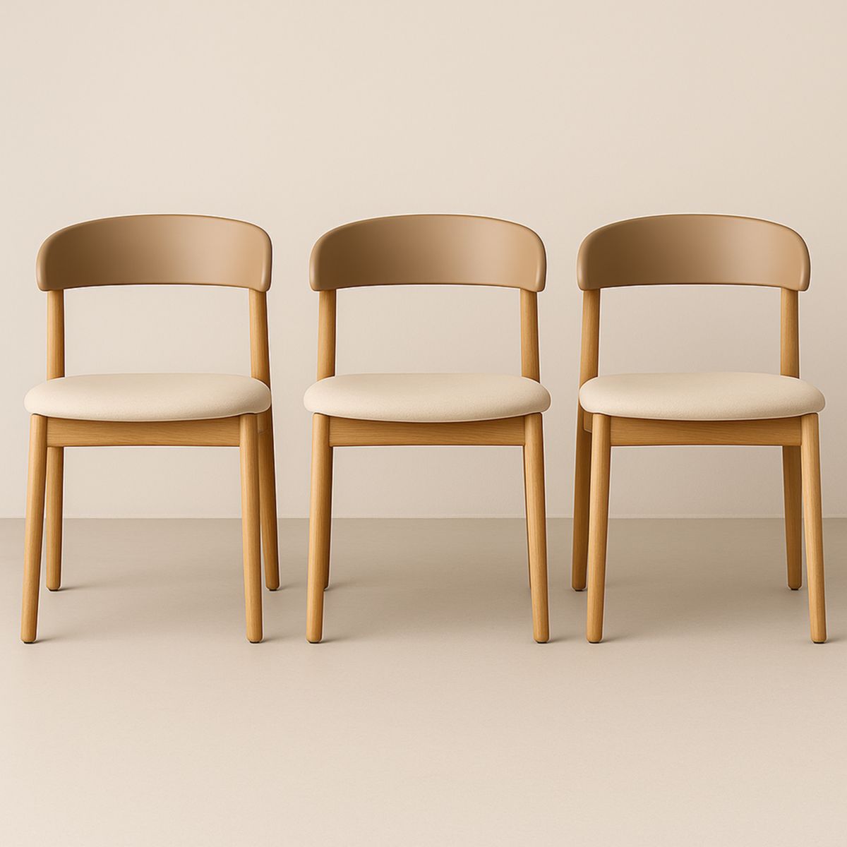 Ensemble de 3 chaises en bois chêne clair et tissu beige